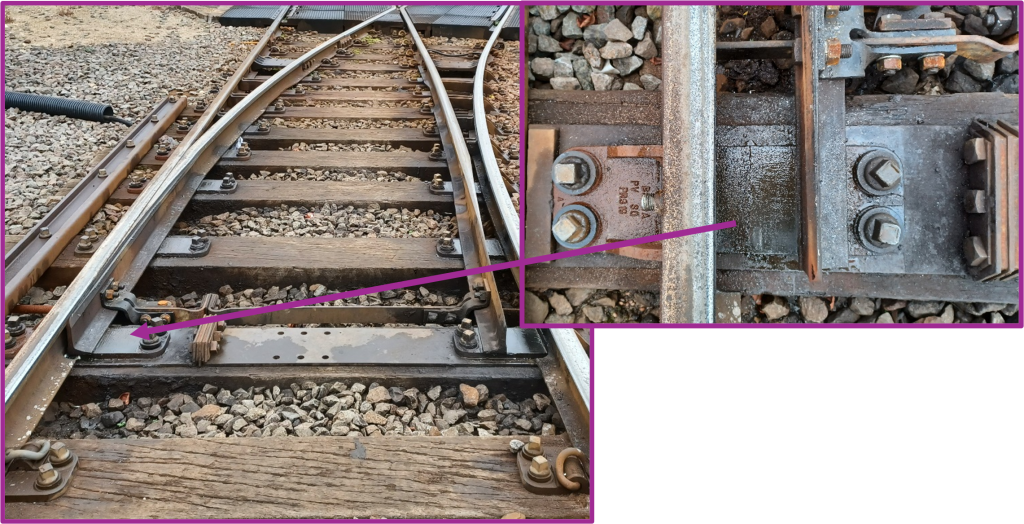 Switch plate lubricant is applied to the top of the plate. Its job is to enable the foot of the switch blade to slide freely with minimal force. This is critical; if a switch blade sticks, it can cause severe delays or derailments.